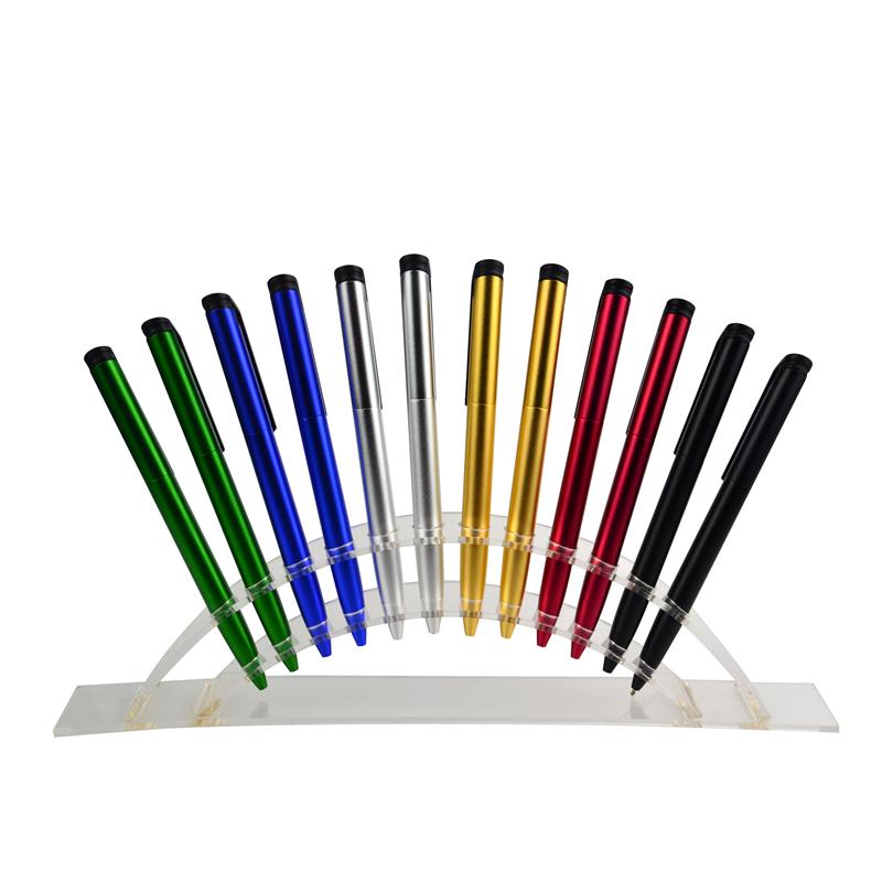 This twist ballpoint pen is made of aluminum and colored by paint spraying, simple and low-key luxury. Various colors are availabe such as silver, gold, blue, red, and green. Also you can customize according to PMS number . Logo can be printed on barrel or the clip. It is about 5.7'' in length and 17 grams weight.