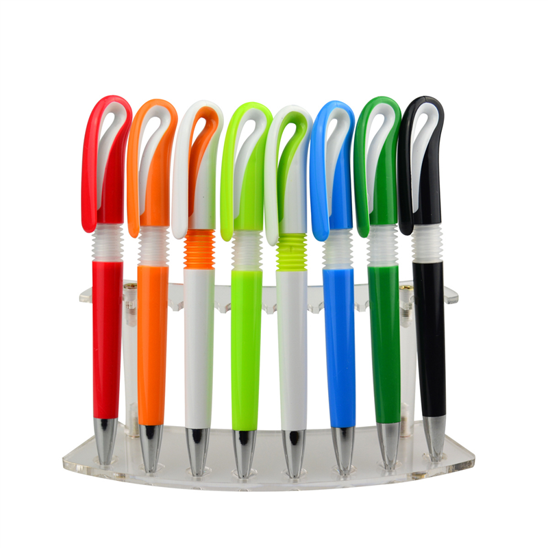 This press type ballpoint pen is made of ABS plastic, it has the shape of swan full of beauty of curves, and the design seems like spring promotes the flexibility when you press it. It is about 5.7'' in length and 9.28 grams weight. Logo can be printed on barrel or the clip. Various colors are available such as red, white, black, green and blue.