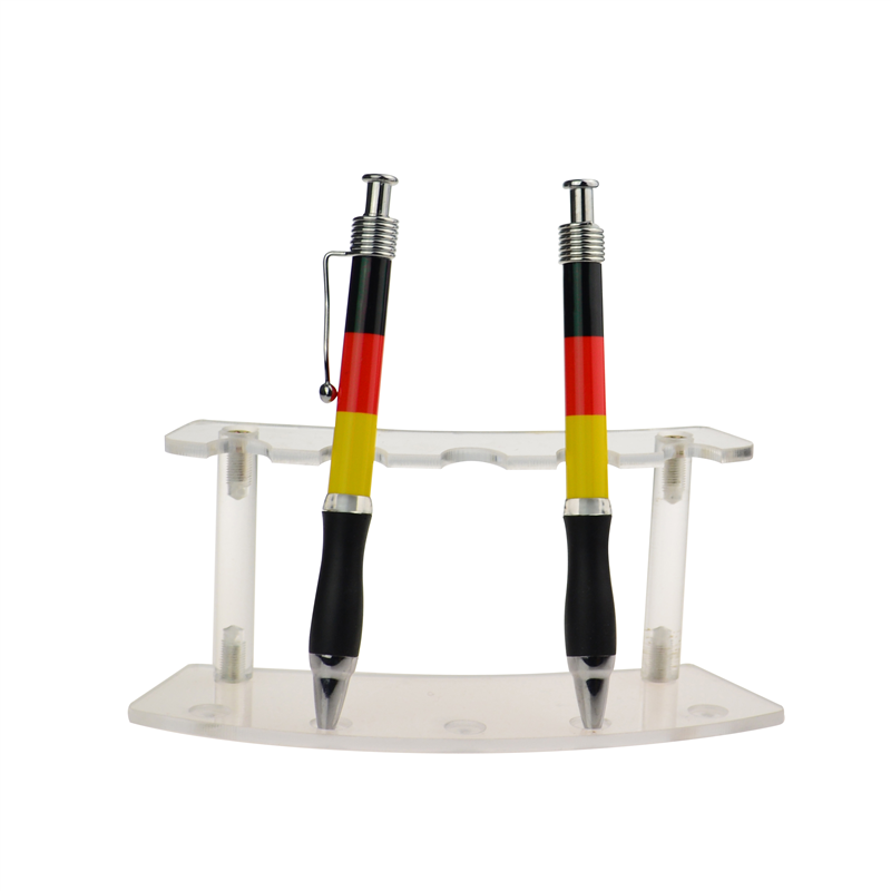 This ballpoint pen is made of ABS plastic, and the clip is metal material. It is about 5.3'' in length and 11.15 grams weight. Unique design of the rubberized grip ensures smooth and comfortable writing. Patterns can be customized on the barrel when large quantity.