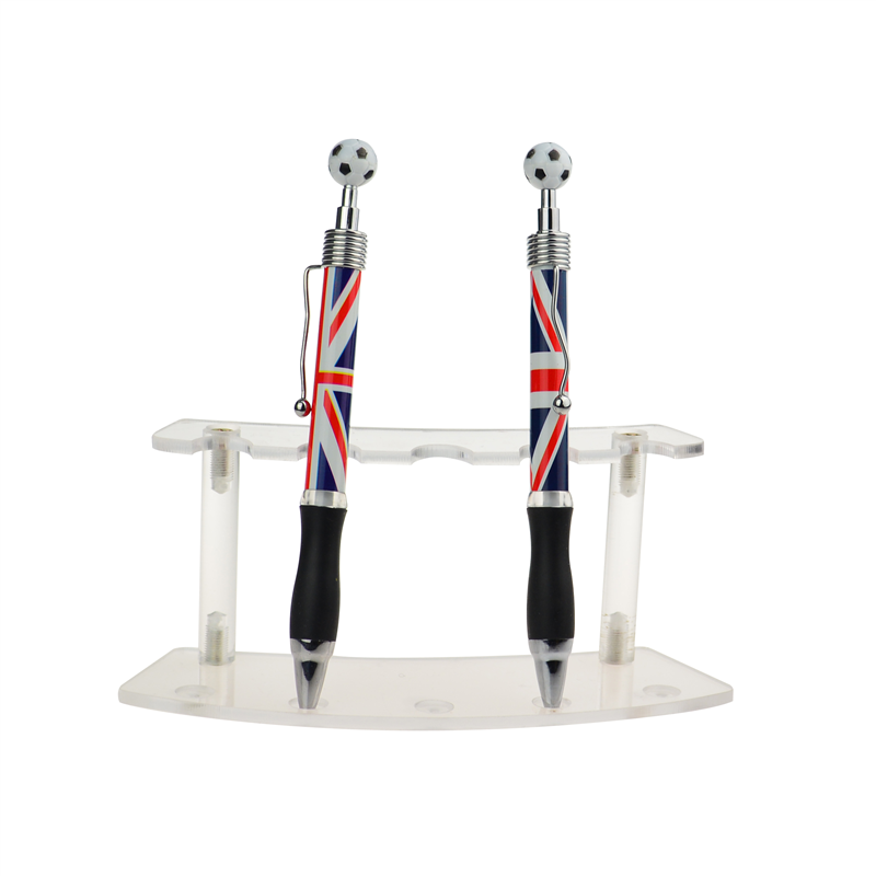 This ballpoint pen is made of ABS plastic, and the clip is metal material. It is about 5.8'' in length and 11.84 grams weight. On the top, the press button is designed in a football shape. Unique design of the rubberized grip ensures smooth and comfortable writing. Pattern can be customized on the barrel when large quantity.