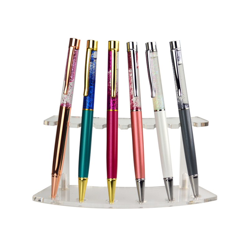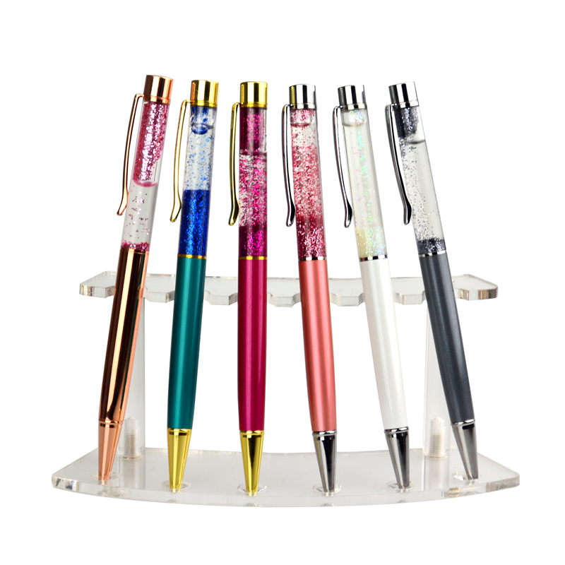 This twist ballpoint pen is made of aluminum painted in different colors such as white, green, gray and green, also can be customized with the color you love. The special design is the floating shining podwer in oil when you shake or turn the pen. It is about 5.5'' in length and 17.91 grams weight. Great gift for girls and ladies. Your logo is available.