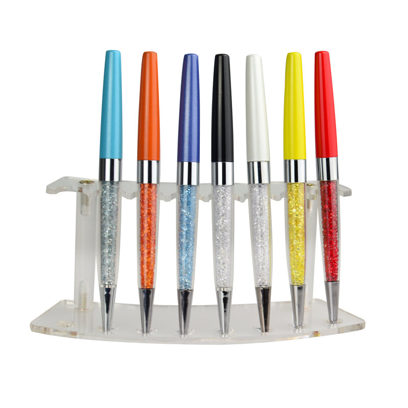 This twist ballpoint pen is made of aluminum, about 5.3'' in length and 13.26 grams weight. It has the beautiful appearance with shining crystal and bright gloss of metal. It does not have the clip but brings nice streamline, so elegant that suitable for every girl and lady. Conventional colors are red, white, yellow and black, also can be customized what you love. Logo is available.