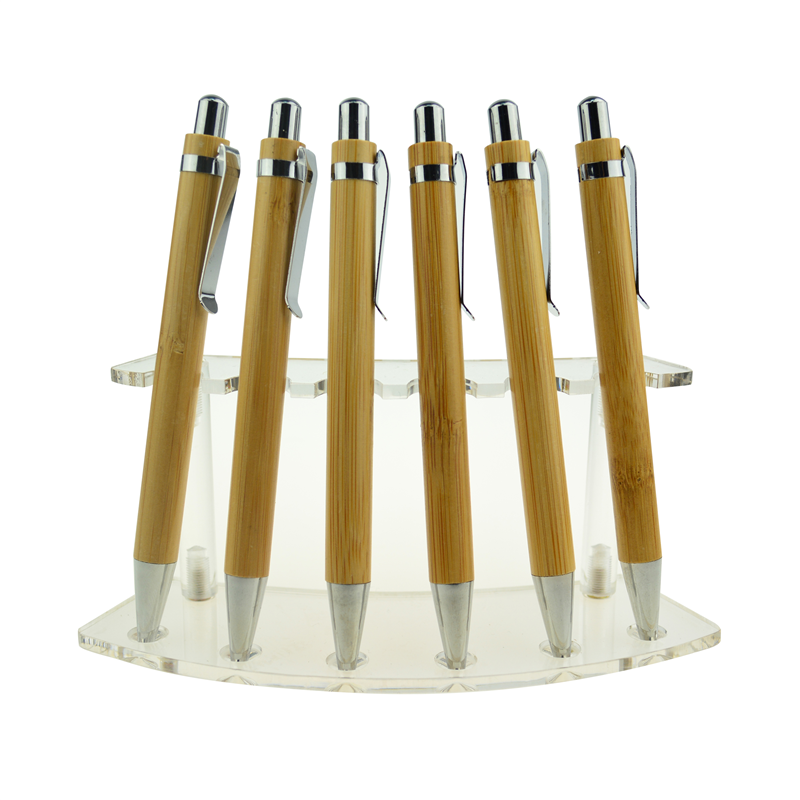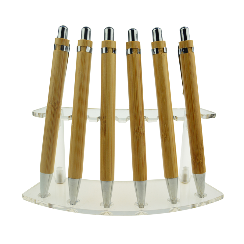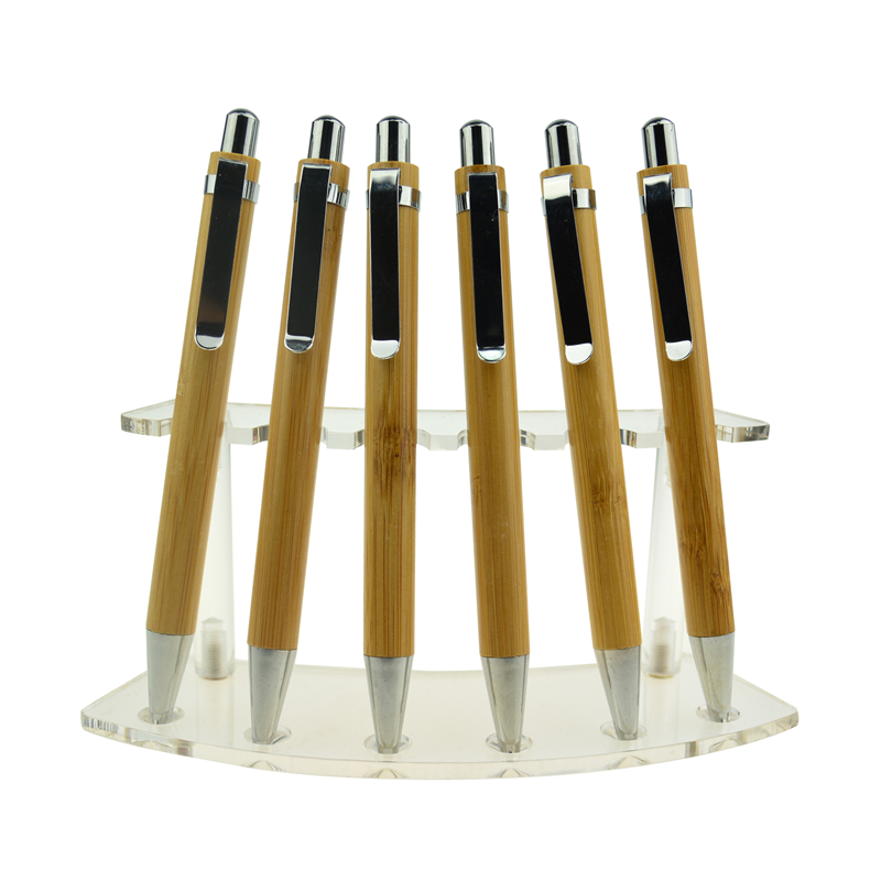This ballpoint pen is made of bamboo for the barrel and metal for the clip, it is about 5.3'' in length and 8.02 grams weight. Portable and new design make it unique for promotion items. Logo can be customized according to your artwork.