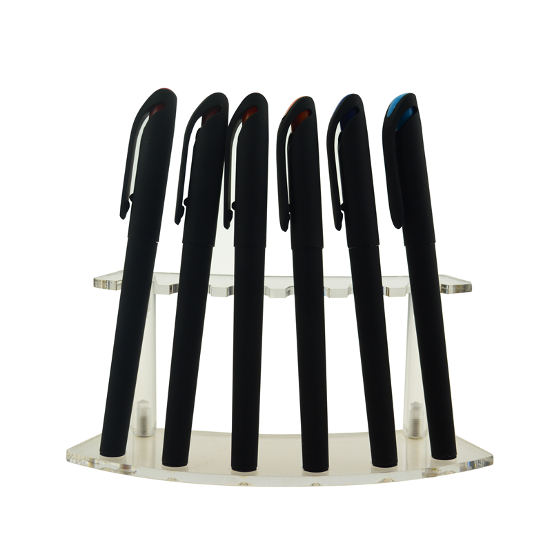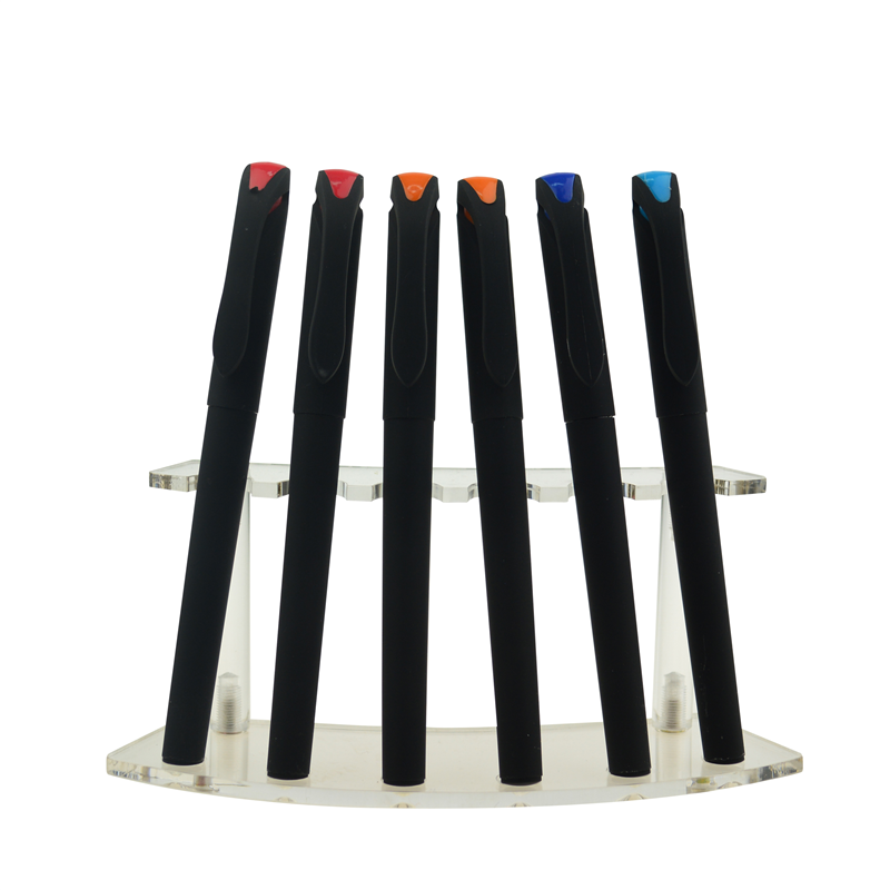 This gel pen is made of ABS plastic with rubber spray, very comfortable for writing. It is about 5.5'' in length and 9.32 grams weight. The main body color is classic black, simple but elegant. Logo is available according to your artwork, great for office supplies.