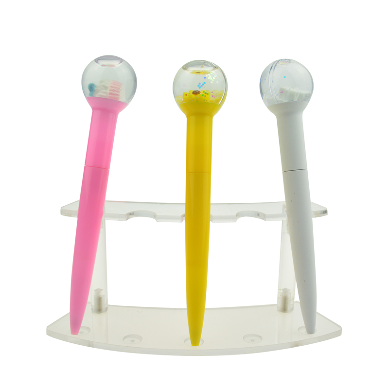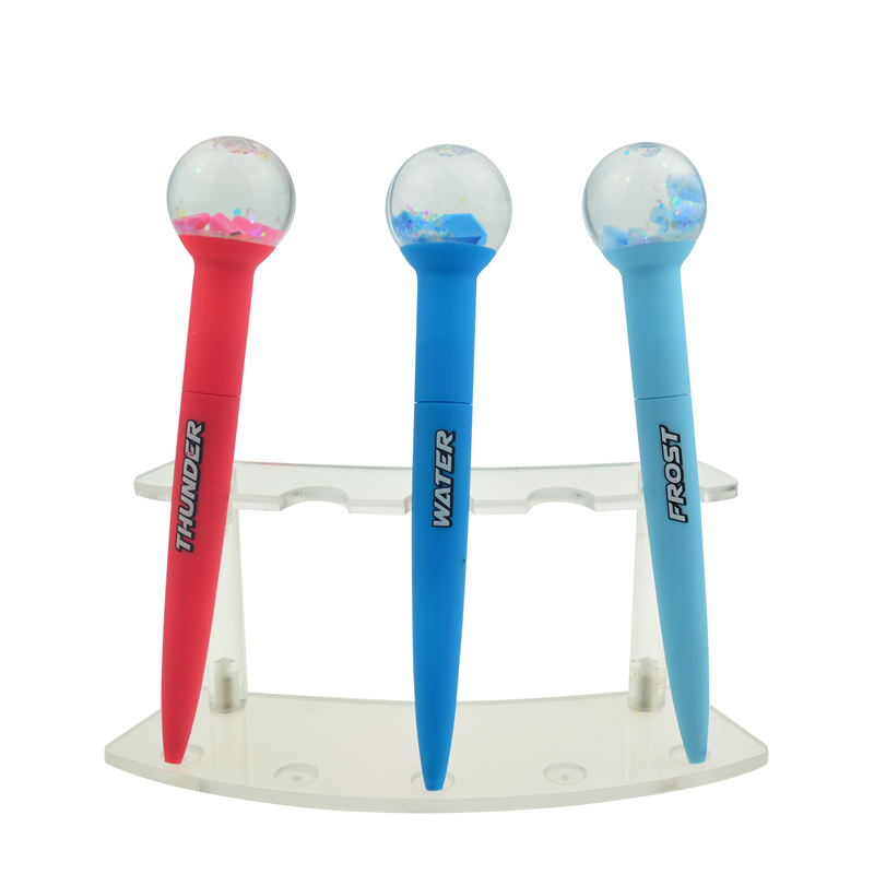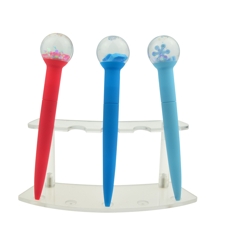 This new design twist ballpoint pen is made of ABS plastic, the barrel can do rubber spray or not as you like, the unique model makes it so beautiful with its floating and shining paillette in the top ball. Conventional colors are white, pink, red, blue and yellow. Logo is available on the barrel. It is about 5.9'' in length and 21.3 grams weight, the ball dia is 1.18'' more or less. The 3D flotage in ball can be customized when large quantity.