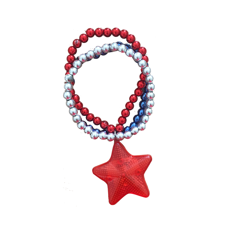 This bracelet made of high quality of plastic, with a start shape pendant, no space allows imprint.
