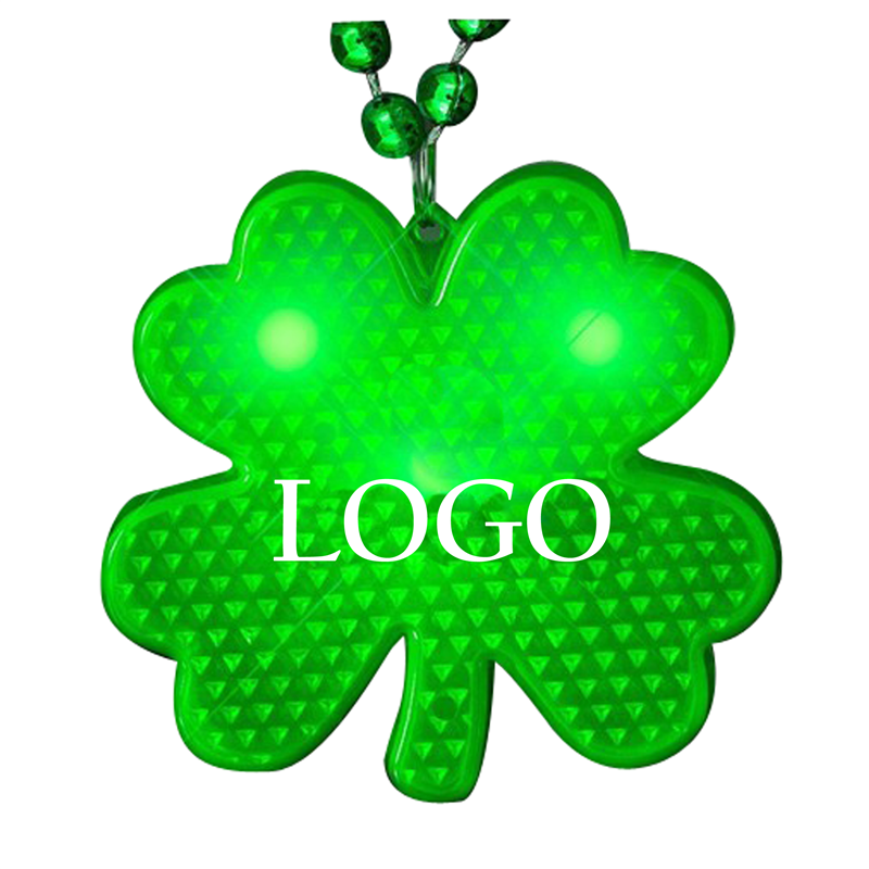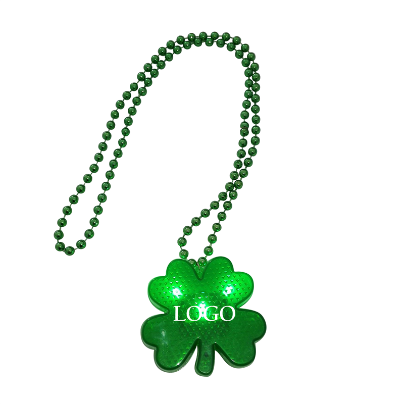 It is made of high quality of plastic, a good gift for St. Patrick's Day. Logo can be printed on the clover shape pendant.