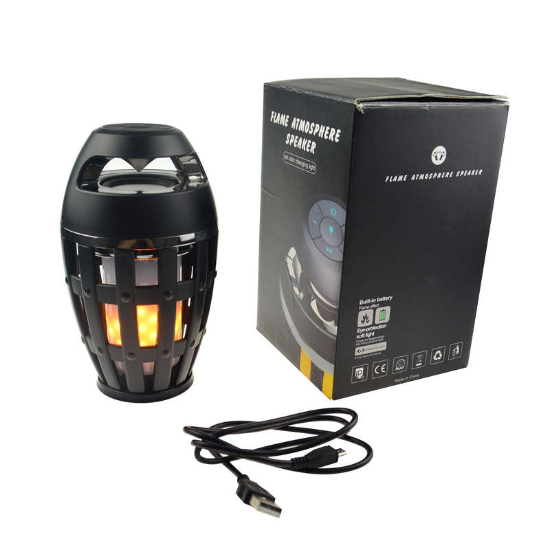 This wireless speaker has flame light, superior bass and sound, it is made of ABS