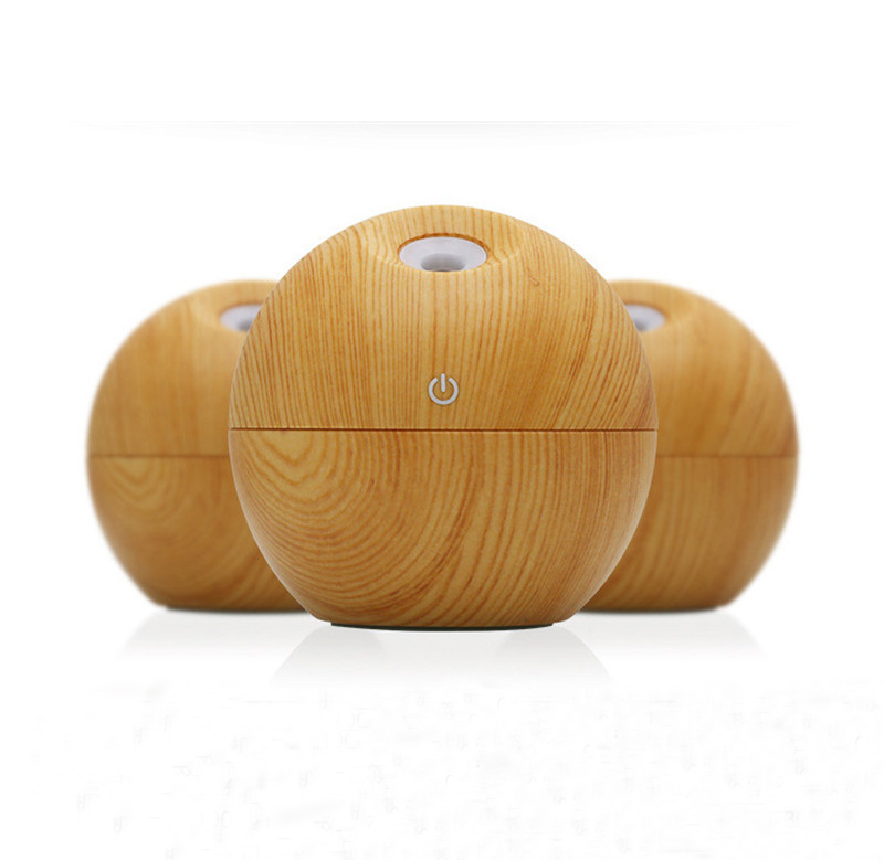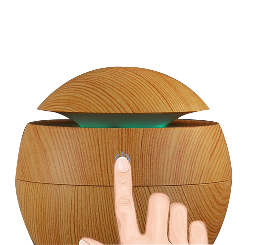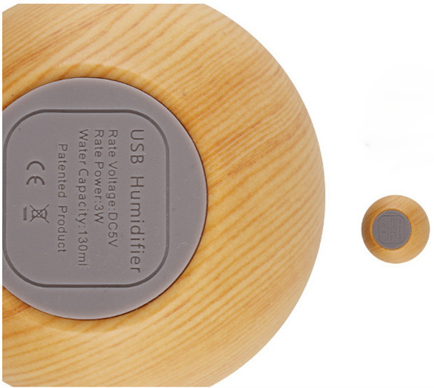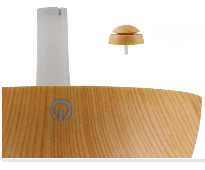 This wood grain humidifier is made of ABS and PP. It has a touch switch. Just use your finger touch the switch button, the humidifier will start to work. It can hold 130ml of water. And it can spray 35ml mist in an hour. Logo printing is available.