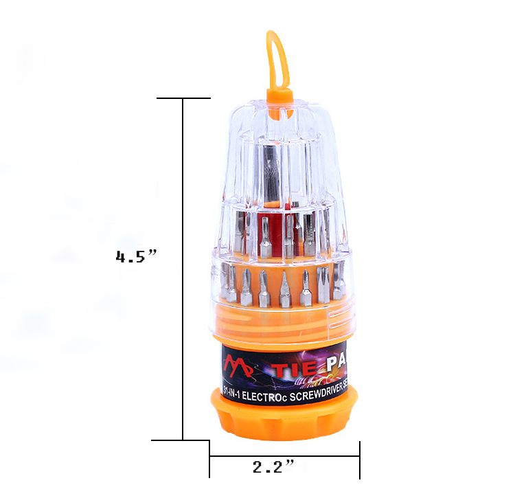 This screwdriver set is made of carbon steel and ABS. It has 31 different Screwdriver heads in it. You can use it repair your computer or phone or other things. Company logo can be customized.