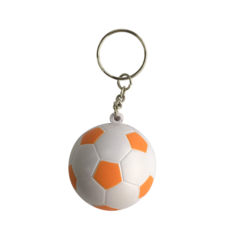 This is a soccer keychain stress ball shich is made by PU foam. We can add the logo on it.