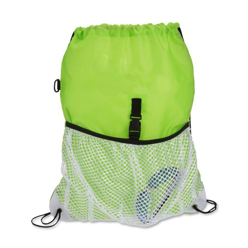 Drawstring backpack is made of polyester and mesh material, the size can be customized as your design, it is very convenient to take some food, shoes and other commodity in an outdoor activities.