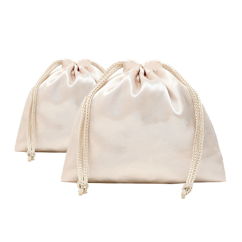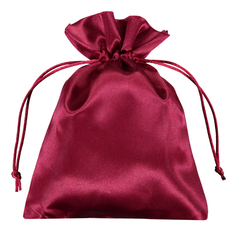 The bag is made of satin material, and size is 5 3/4"(L) x 5 1/8"(W). It is a very good dust bag for jewelry and cosmetics, and the size also can be customized, it can be a delicate shoes bag.