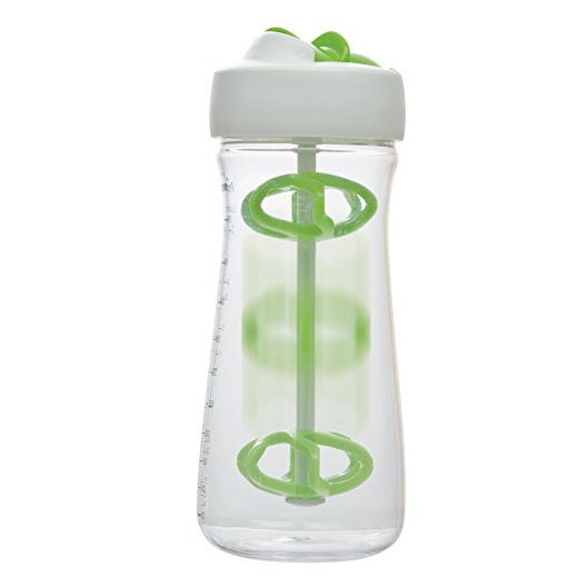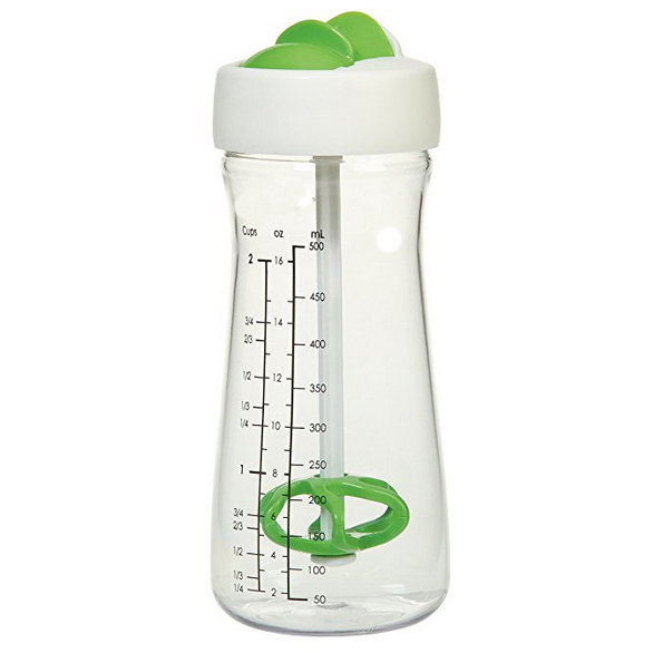 It is made of PP. It can mix, pour and store dressings all in one. Gliding paddle wheel mixes and emulsifies when shaken, and it mixes all types of dressings quickly and easily. Company logo and name can be imprinted.