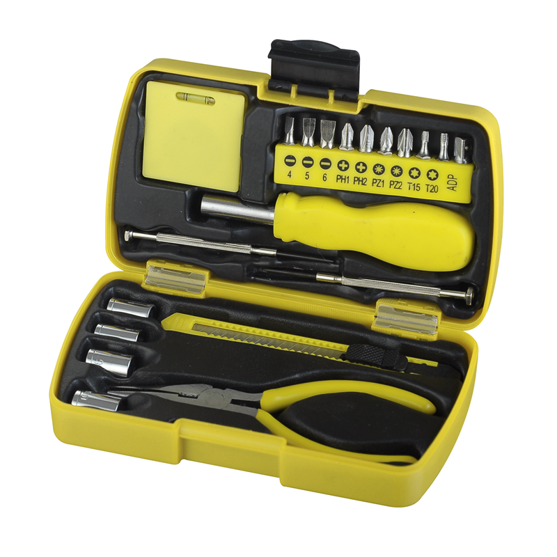 It contains the tools needed for most household repairs.All tools are packed neatly in a self contained durable molded case.