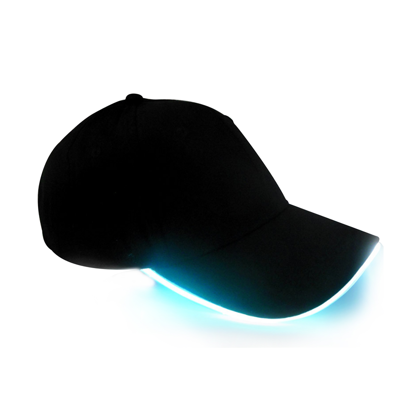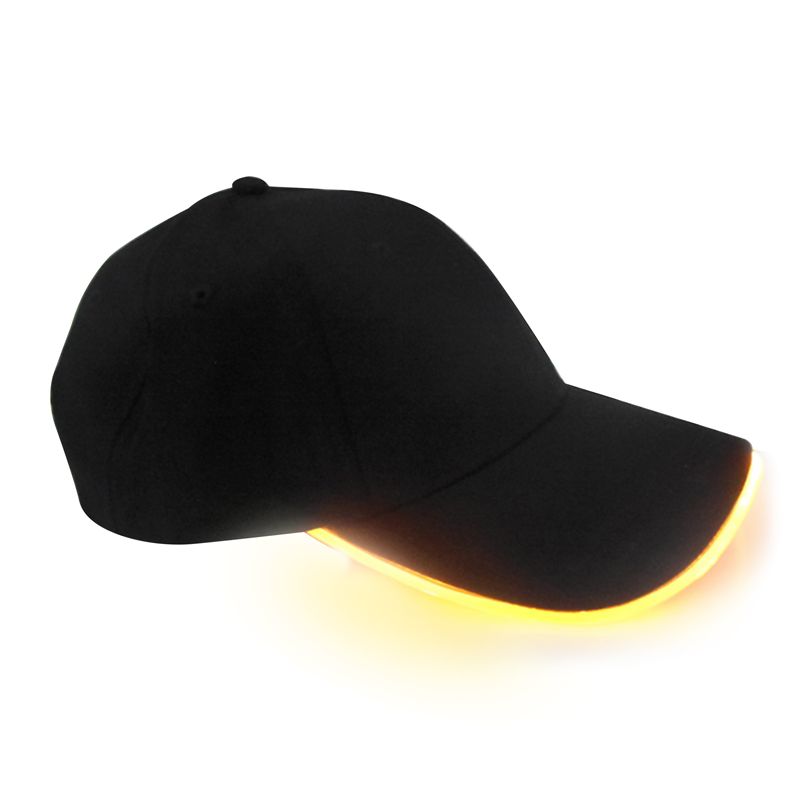 This cap is made of cotton. Great for sports, exercise, camping and more. This adjustable baseball hat also comes with an LED light along the bill which can provide light during the night when camping, or even to stay safe on the street. Different LED color can be chosen: red, yellow, blue, green, orange, white. Company logo and name printing are available.