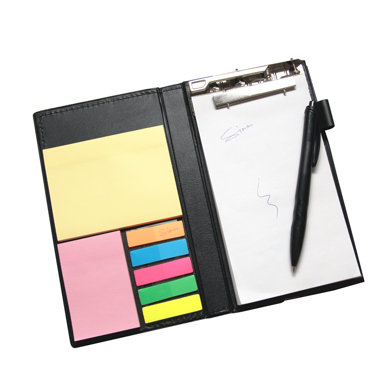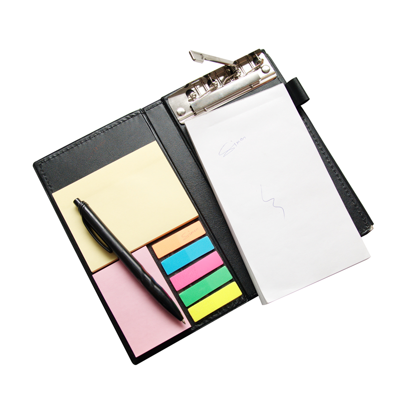 This helpful booklet filled with promotional sticky notes and flags that will help keep recipients organized in the office or at home. It also has a PU leather cover. Your company logo and name can be imprinted. The price doesn't include ballpoint pen.