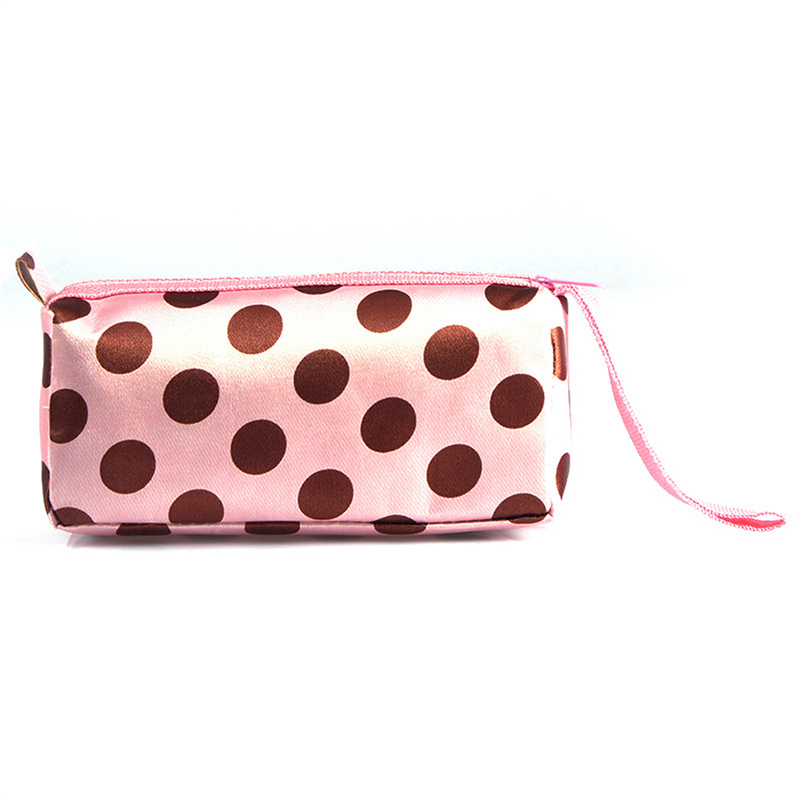 This handbag is made of poly satin and polyester liner, you can put all your cosmetics in it. Different patterns can for your choose.