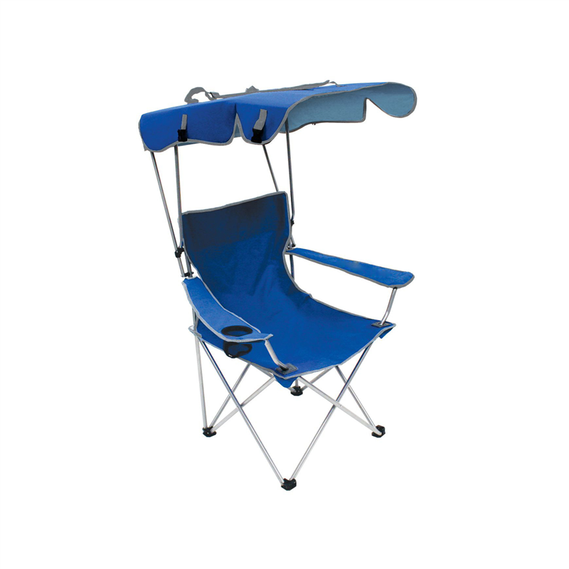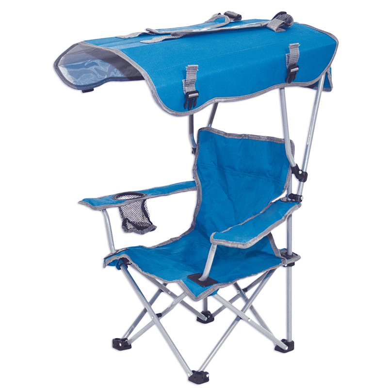 It is made of 600D oxford and steel frame, portable folding camp chair with adjustable canopy and mesh cup holder. Durable steel frame supports weight up to 226 lbs.