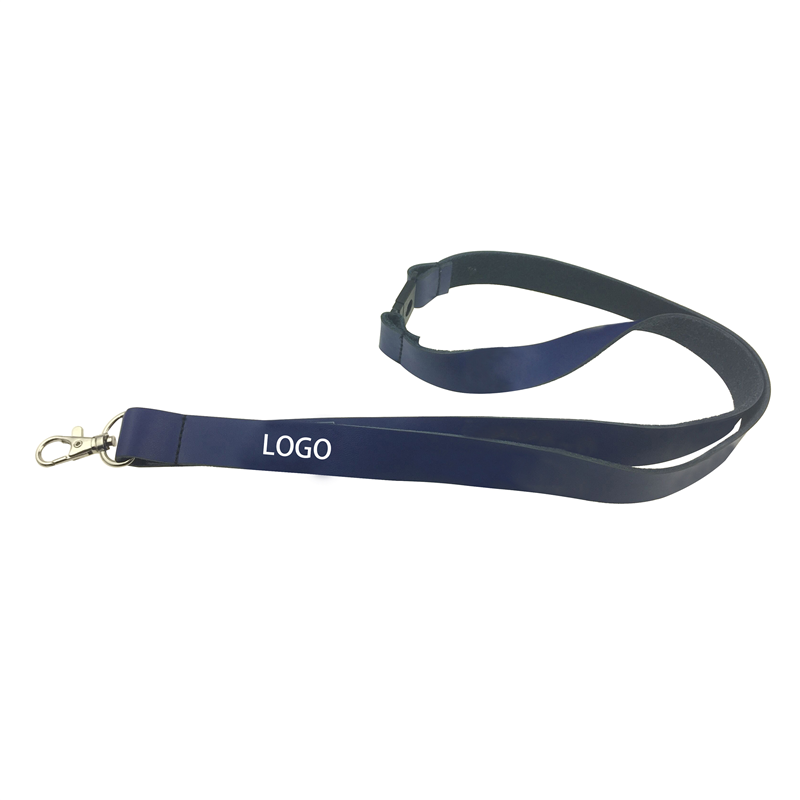 The product is made of PU leather,and the lanyard with a safety buckle which is made of plastic. your logo can be printed on the pu leather.