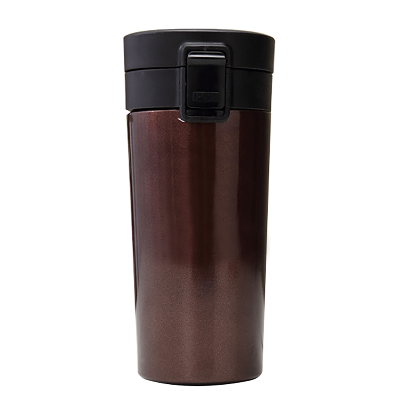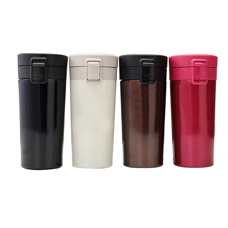 It is double wall stainless steel. Various colors are available. Can be used at office, home or outside. Company logo and name can be imprinted.