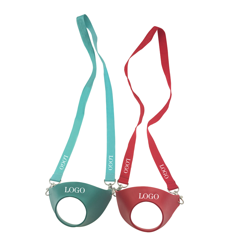 It is made of polyester and silicone, the ultimate hands free wine experience. and your logo can be customized on holder and lanyard.