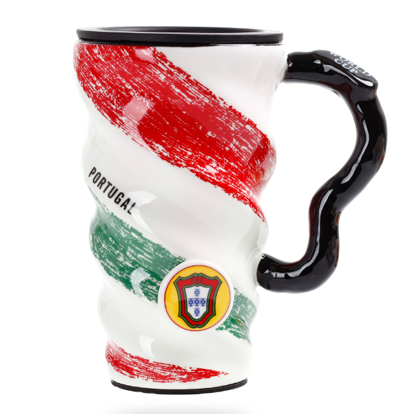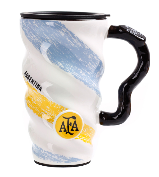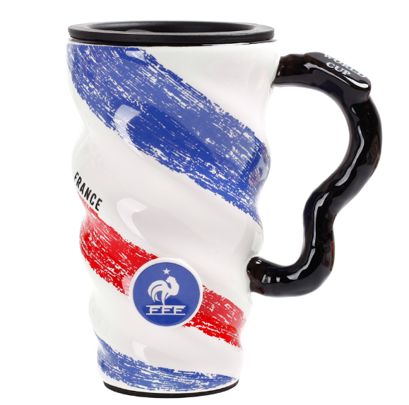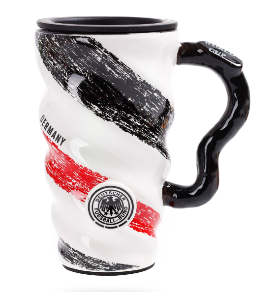 This cup is made of ceramic. It looks so special, due to it's color fits well with the color of the world cup. It has three place to show your logo.