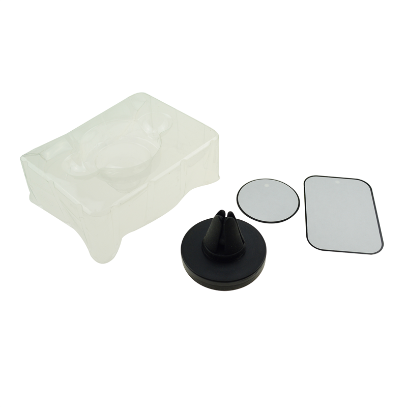 This phone holder is made of ABS, silicone and magnet, coming with 1 round phone sticker and 1 big size square phone sticker.