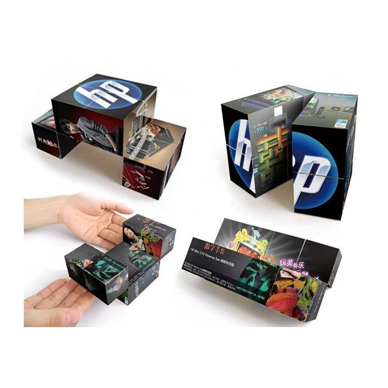 This foldable square cube is made of ps, size 7 x 7 x 7cm. Custom Sticker for your artwork. It suits all kinds of your promotion activities.