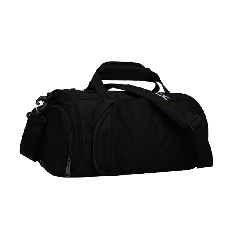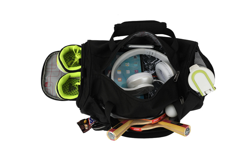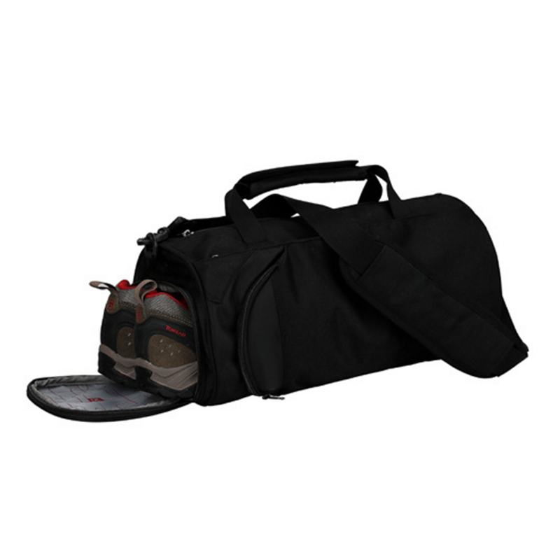 It is made of polyester, with comfortable shoulder strap pad and super-soft haul handle. The shoes can be put on the side of the bag. Company logo and name can be imprinted.