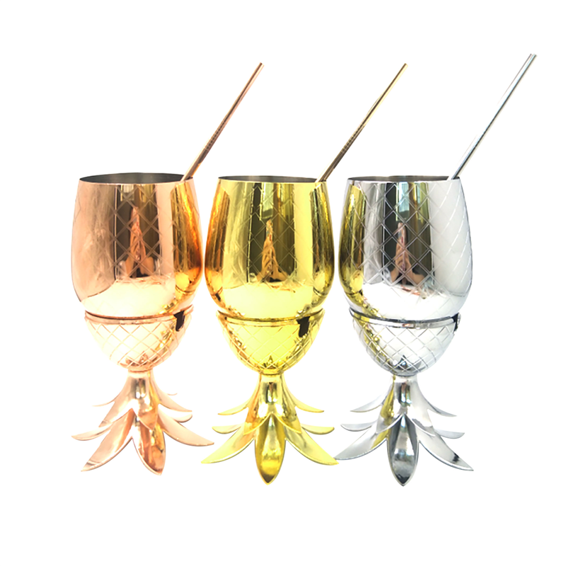 It is made of stainless steel, you can remove the top, turn it upside down and nest the cup on the leafy pedestal. Company logo and name can be engraved.