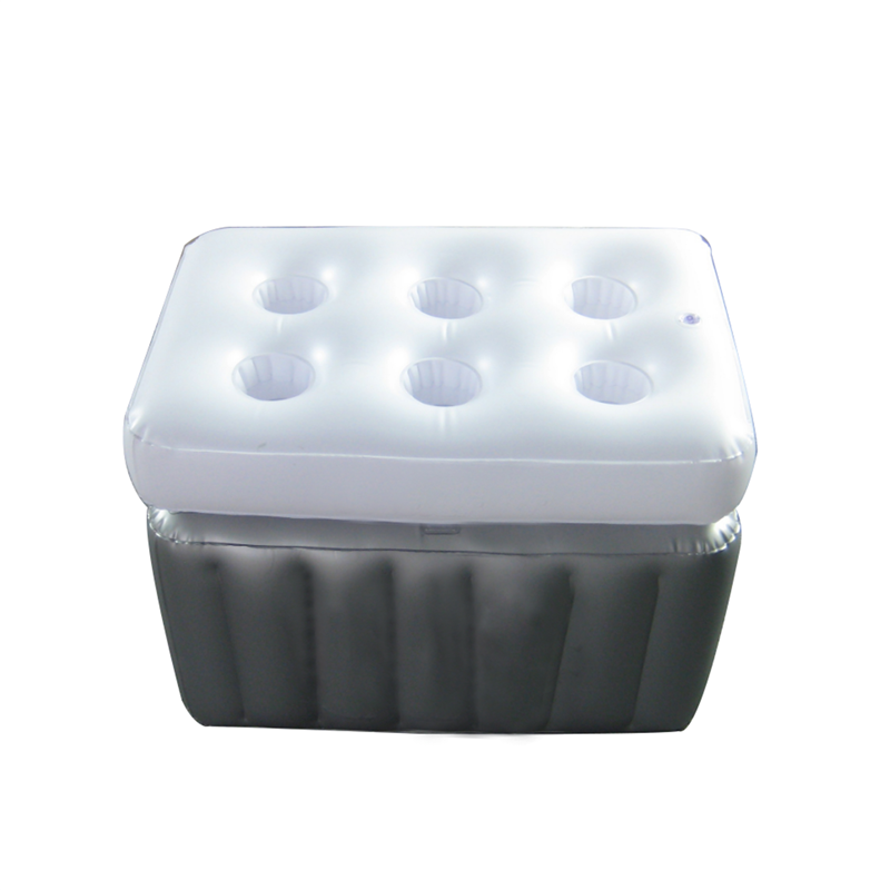 It is made of PVC. This inflatable treasure bucket ice bucket design is very new, the lid is removable. It can be used to stock beverages, beer cans soda bottles; Perfect for pool or beach parties, also suitable for birthday party, pajamas party and so on. Company logo and name can be imprinted.