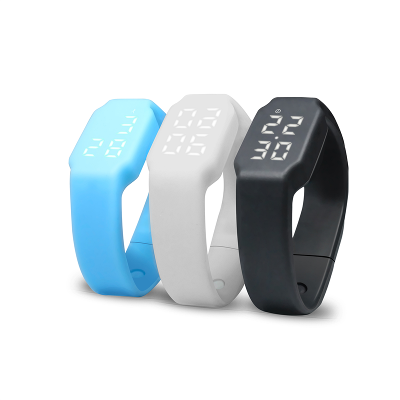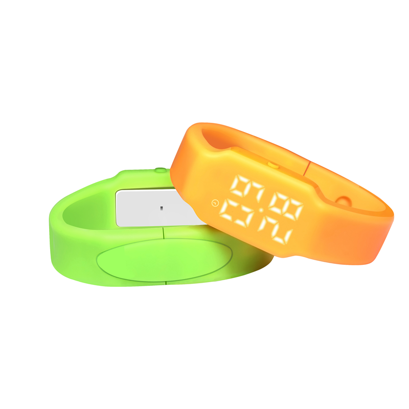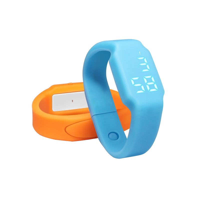Polular silicone fitness tracker can be used as pedometer, active time, calorie counter, time and temperature display, silent wake alarm. Available in several color. Compatible with Android and IOS operationn system.