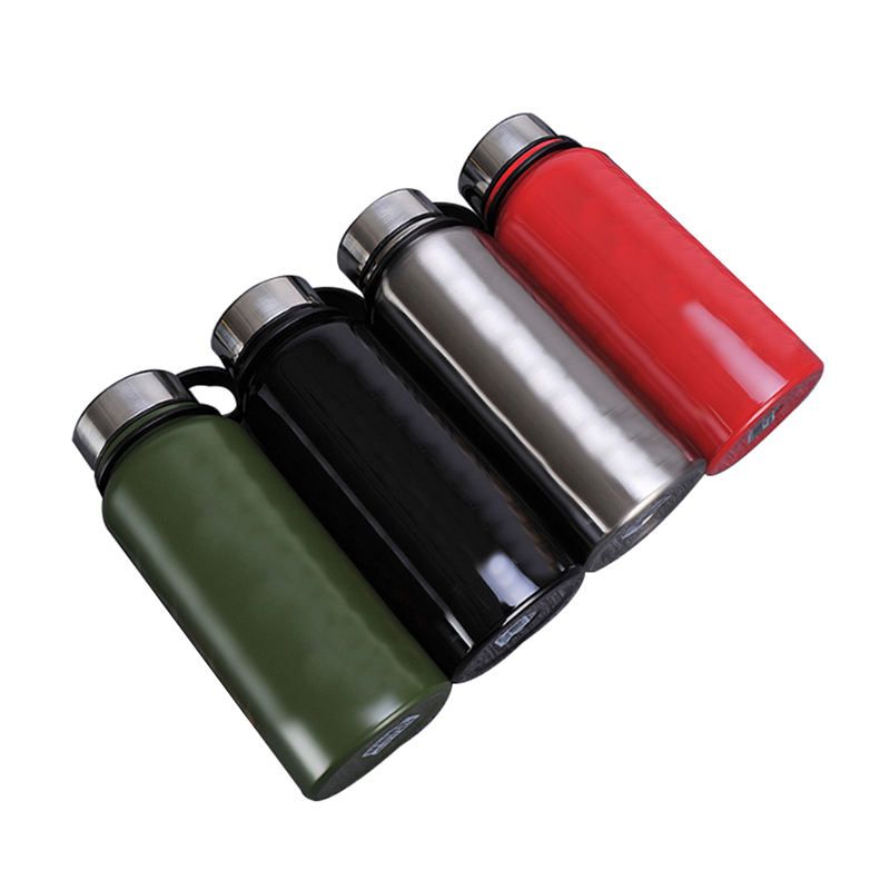 It is made of stainless steel. Double wall stainless steel will keep ice from melting completely over night. It is perfect for the gym and for other sporting activities. Also it works great for hiking, camping and outdoor activities. It can be used as a water bottle or a thermos and is extremely versatile. Company logo and name can be imprinted. 18 oz, 28 oz, 38 oz, 50 oz are also available. Price below is for 28 oz.