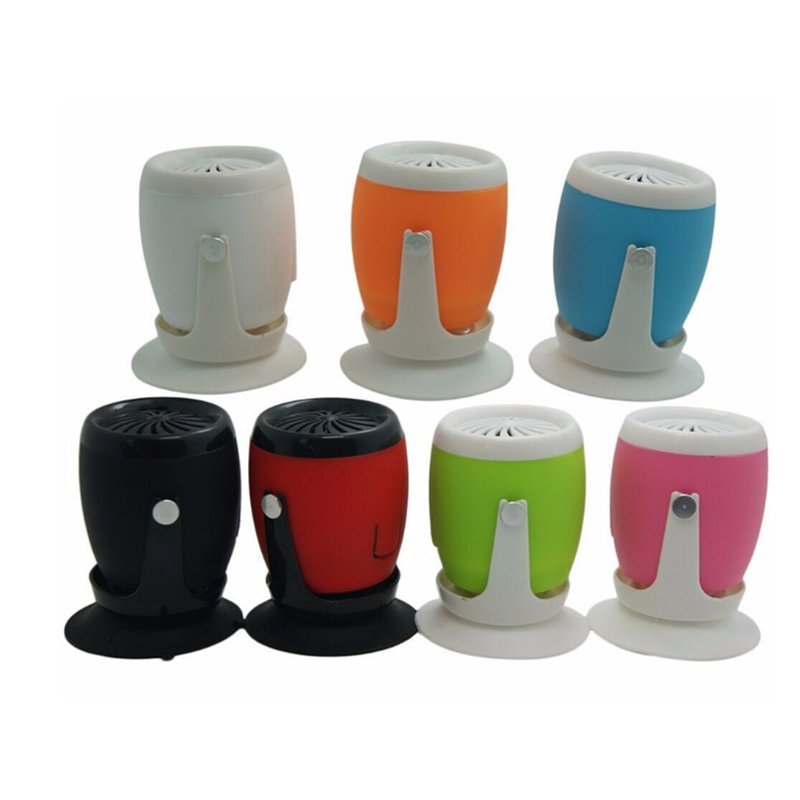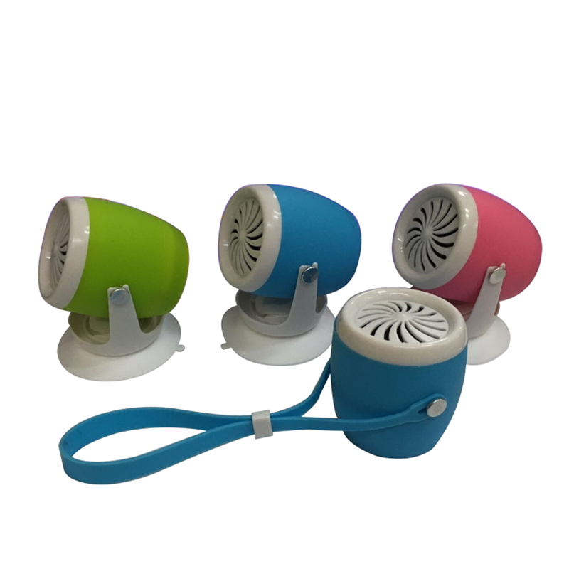 It is made of ABS. Great for outdoor activities, you can hang it on your bag during your outdoor sports. Also it can be acted as a holder speaker, it can stick on the wall, glass or mobile phone. Company logo and name can be imprinted.