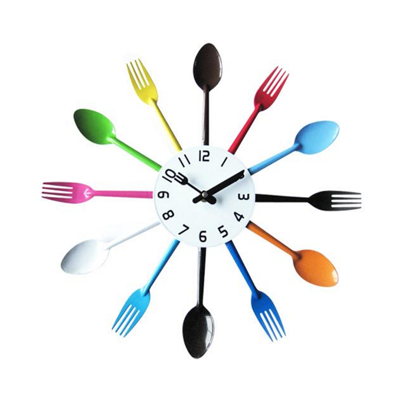 It is made of Iron, and this decorative wall clock is a piece of art with cutlery style. Great for kitchen, dining hall, restaurant in modern. A good choice to send to your family, friends for home decoration.