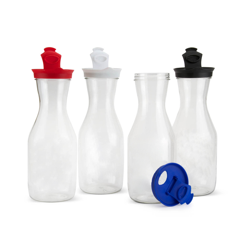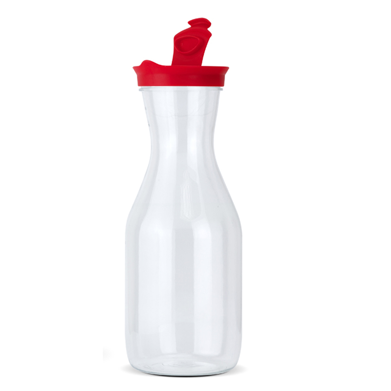 26oz plastic carafe is made of PET and PP. It features as BPA-free, comes with flip-top lid and vailable different lid colors.