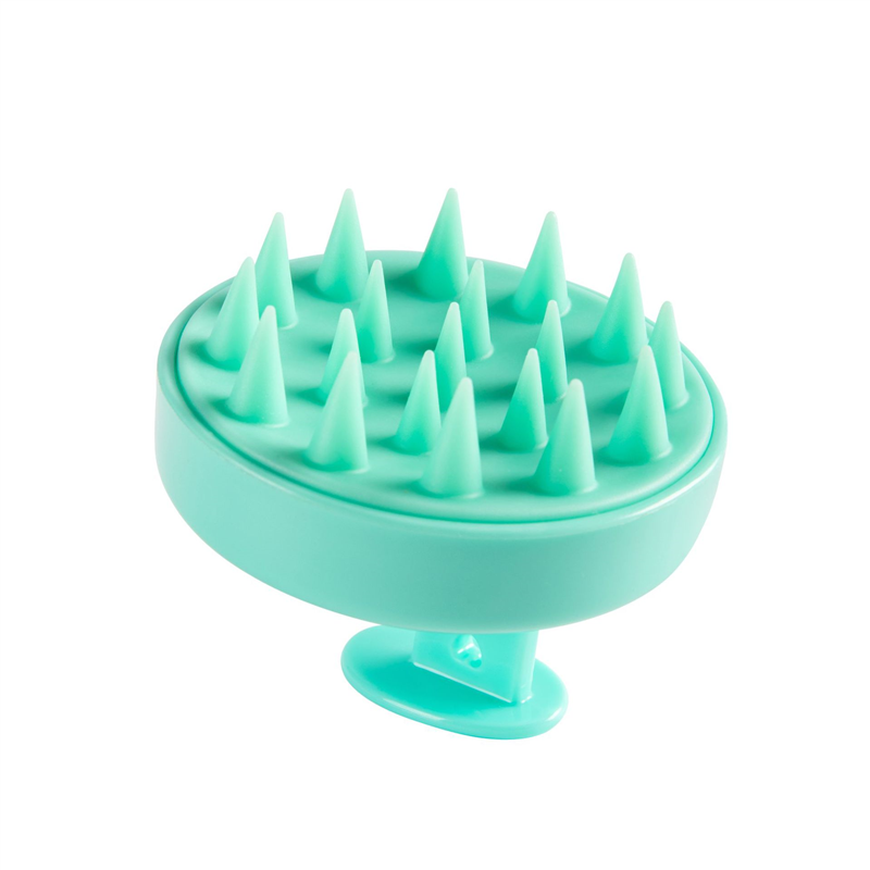 It is made of silicone. This bristle brush is ergonomically designed. It was a sturdy handle which fits your fingers for increasing the grip force although it wet. When use the massager brush in your hand, you can apply the perfect pressure to use on any part of your body you can reach. Company logo and name can be imprinted.
