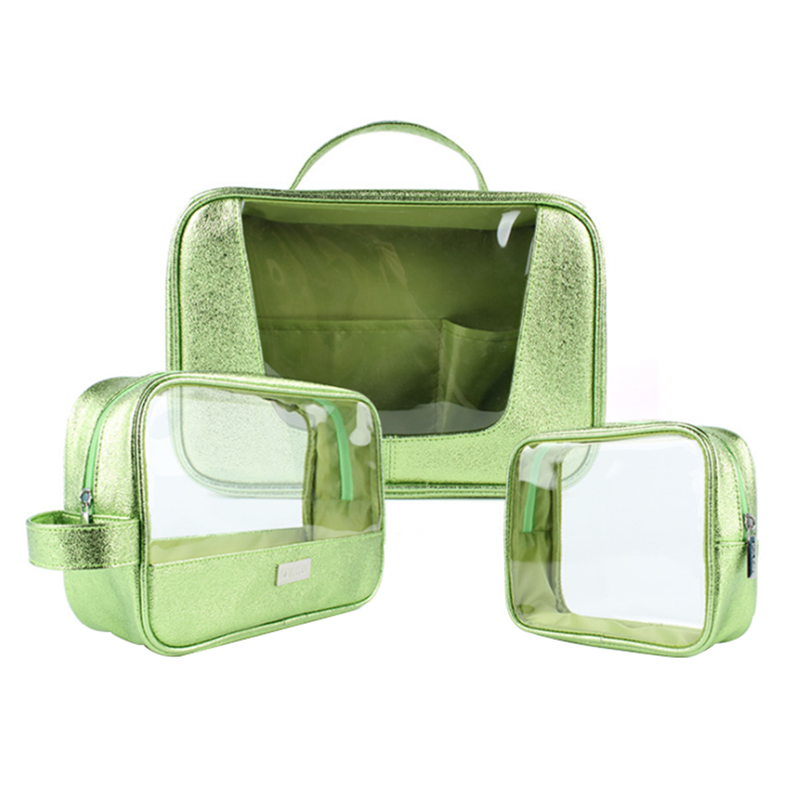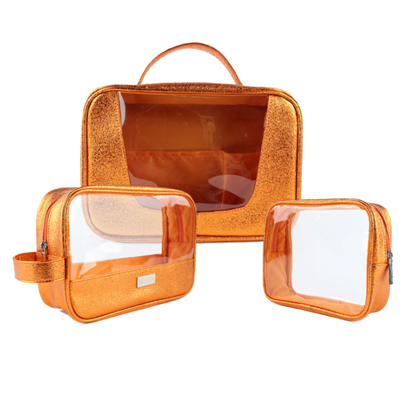 It is made of PVC. Keep your personal stuff in a good order and easily accessible. Water-resistant fabric will protect your personal items from penetration of moisture or bacterial, bring you a clean and comfortable trip. Company logo and name can be imprinted.It contains 3 packs, large size: 10"x 6.7" x 3.3", medium size: 9.6" x 6.7" x 3.1" , small size: 6.9" x 5.9" x 2.4".