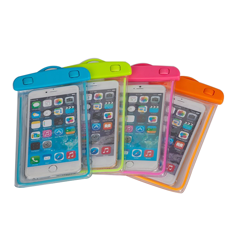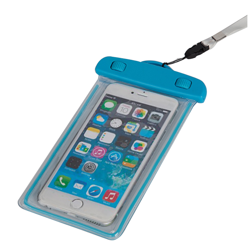 It is made of plastic. Comes with a neck strap for convenient carrying. Features a simple snap and lock access, easy to keep out water, snow, dust, sand, and dirt. Company logo and name can be imprinted.