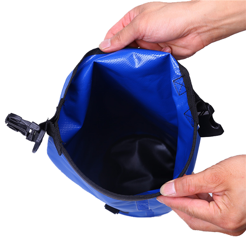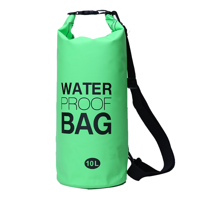 It is made of PVC. Keep your dry bag with kayaking, boating, fishing, the pool, or on the beach. Comes with an extra long removable and adjustable shoulder sling for easy carry and transport. You can sling the strap over your shoulder,Or attach the strap to your boat or kayak to keep your bag conveniently at hand. 5L, 10L, 15L, 25L, 30L are also available. Price below is for 10L.