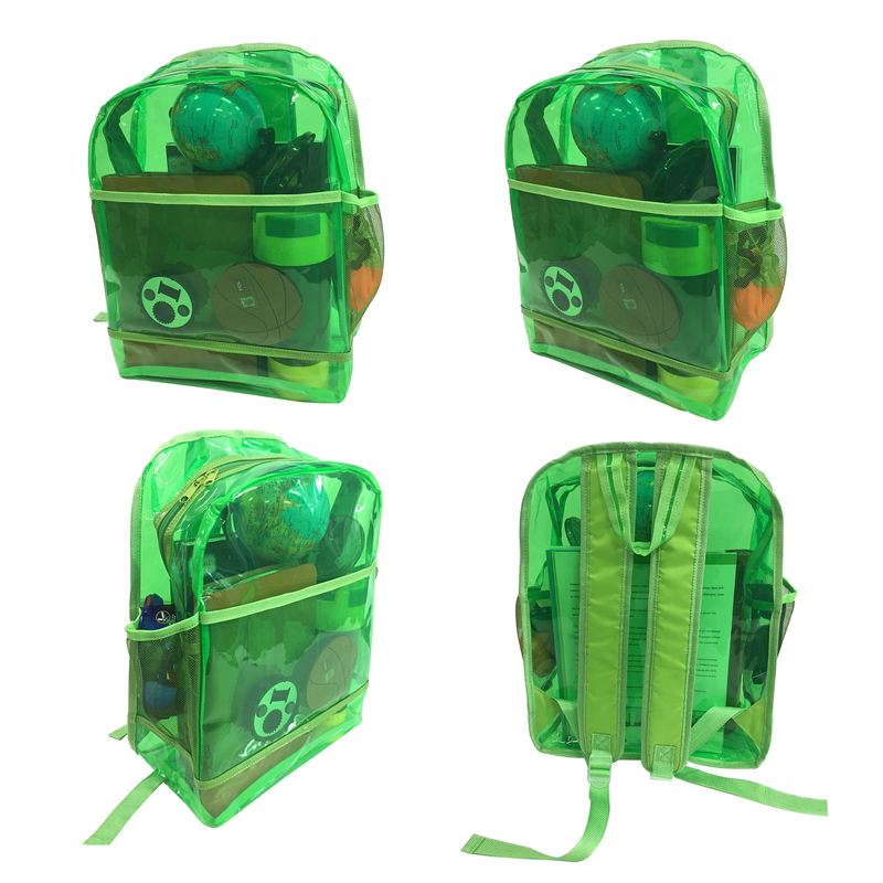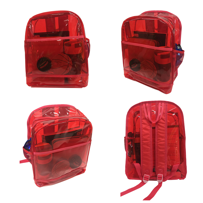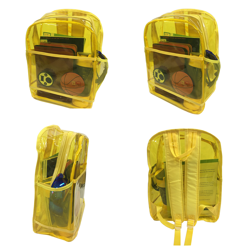 It is made of water-resistant PVC plastic, clear school backpack for transporting school books and everyday gear. It is great for seeing inside and quickly finding what you need. Mesh organizer in front pocket for storing pencils, pens, and more. exterior water-bottle holder.