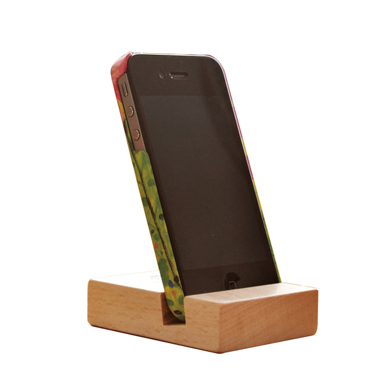 This phone holder is made of beech wood. It is firm and durable. The holder has perfect size compatible with all kinds of smart phone. The angle is perfect for charging, watching vedio/media, and having face time.
