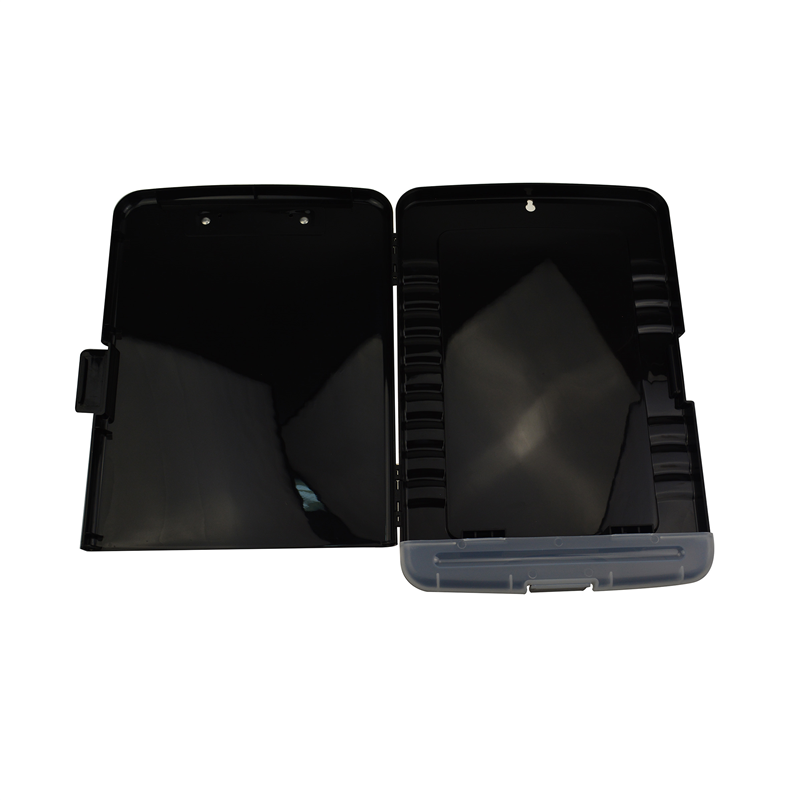 This box made of PP, coming with a pencil box on the bottom of box, it can clip and storage your files in the same time.