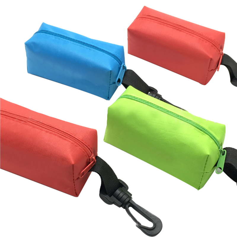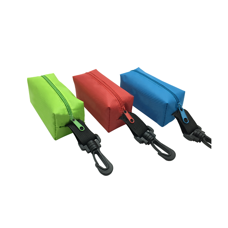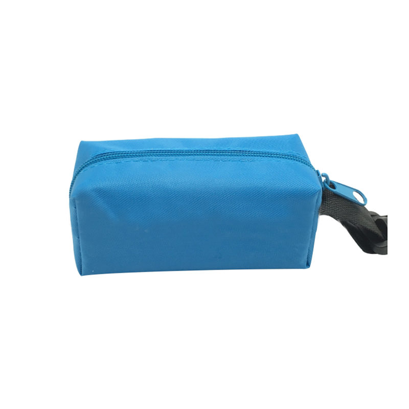 It is made of oxford. It can hold pens, cables, earbuds, toiletries and more. The plastic carabiner makes it easily to handle in any bag. Company logo and name can be imprinted.