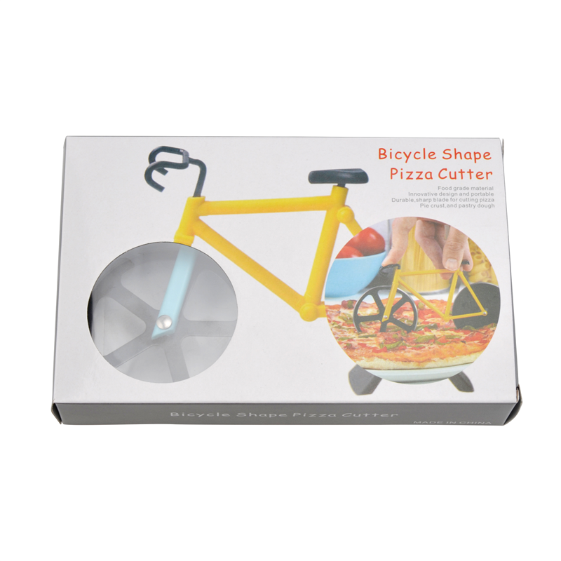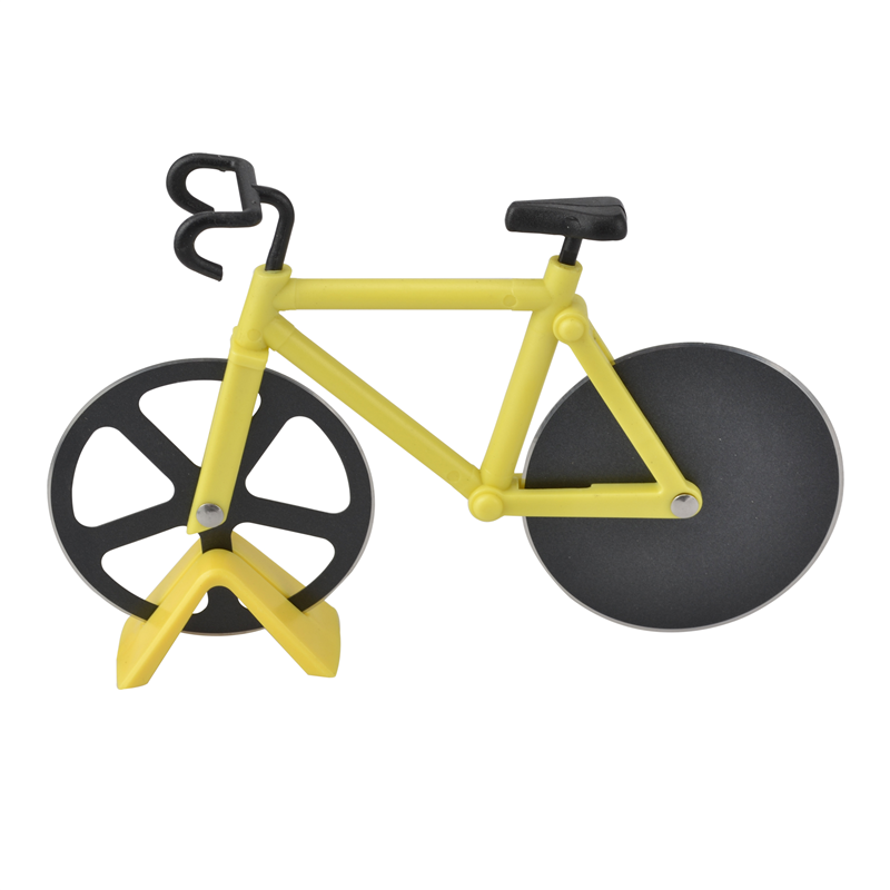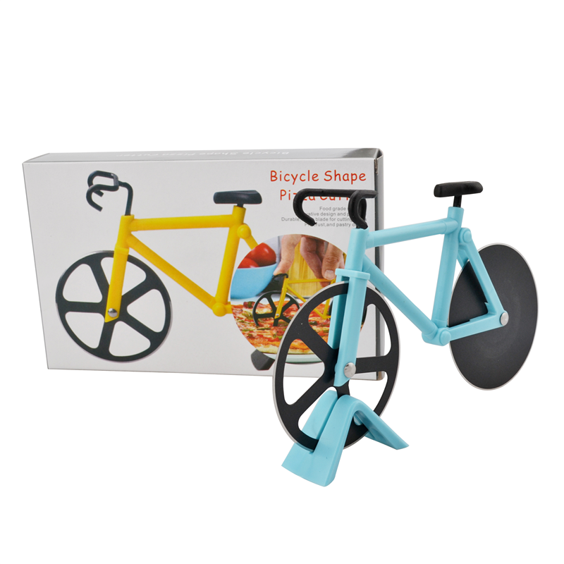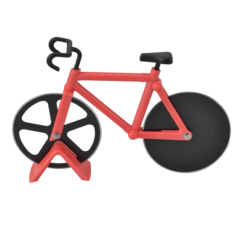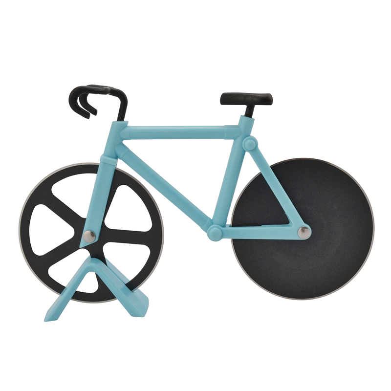 This cool pizza cutter features a dual blade design with 2 non-stick stainless blades for effortless cutting and simple cleaning. It is 1/10th scale of a real life fixie bike and is the perfect gift for bike enthusiasts, pizza lovers and anyone who wants a great talking point for the kitchen. It also includes a sturdy display stand for easy storage and display. It's a very fun and practical kitchen tool for yourself or the pizza lover in your life. Your company logo can be customized.