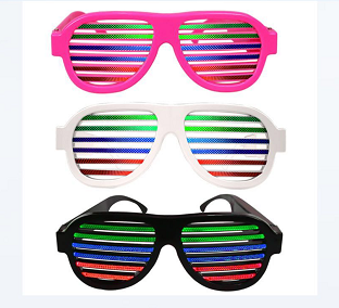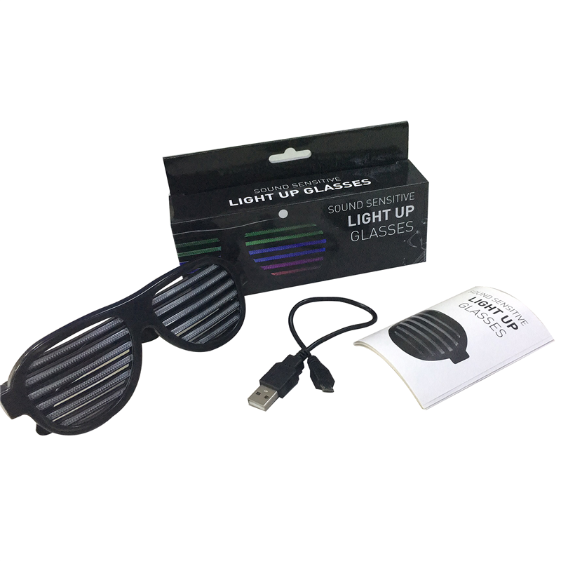 The hassle of changing batteries is a thing of the past with Rechargeable Sound Reactive LED Rave Glasses! LED Rave Shades have bright lights that rise and bump with the sound of music. Great for... Parties Clubs & Raves Music Festivals & Concerts To activate your Sound Activated Slotted Glasses, press the button located underneath the left arm and let the music play. Glasses will light up automatically to the music or the sound of your voice. Logo is available.