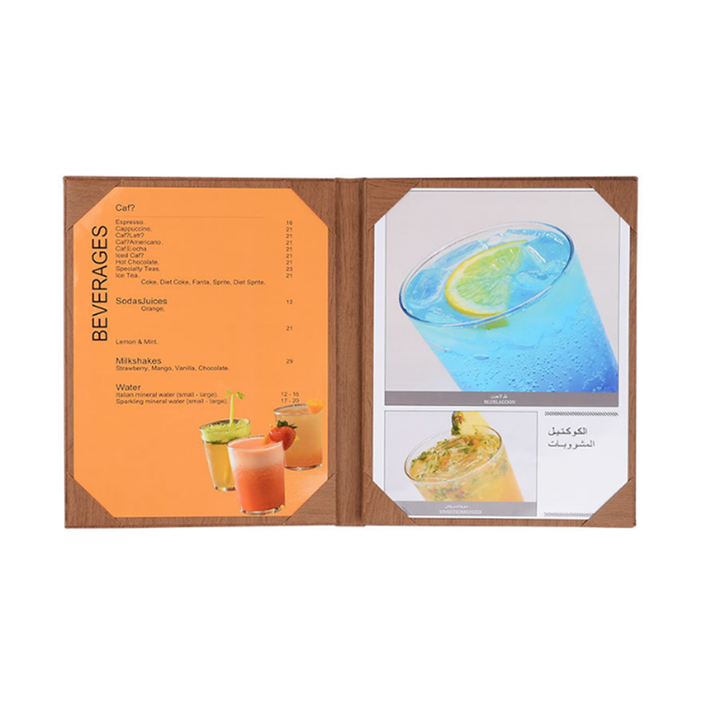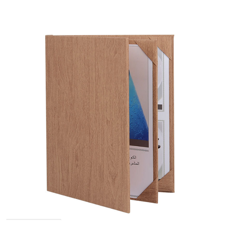 It is made of PU. It is necessary in the restaurant or hotel. Company logo and name can be debossed.