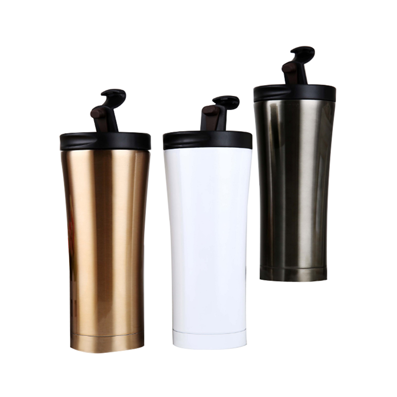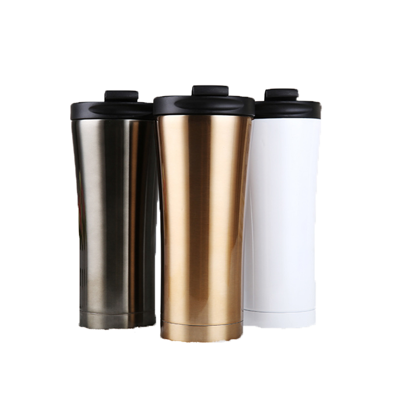 It is made of double wall stainless steel. This water Bottle can make you enjoy cool and fresh in hot summer, enjoy the warmth in cold winter. The flip-top lid with silicone seal helps preventing spills. Company logo and name can be imprinted.