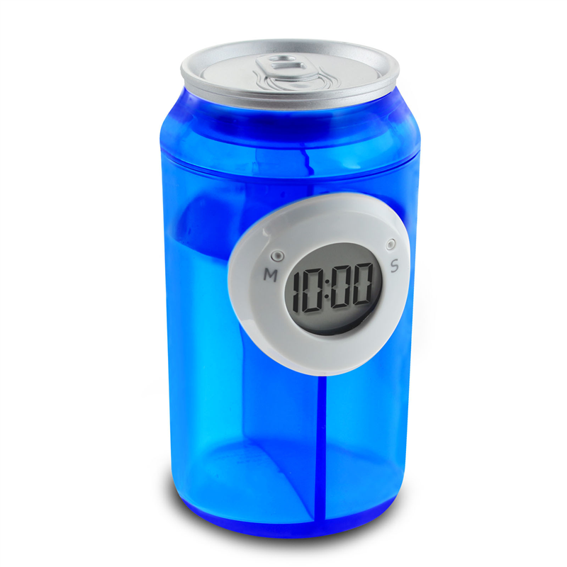 This clock coming with can shape, works without battery, it is starting to work when you filled water.